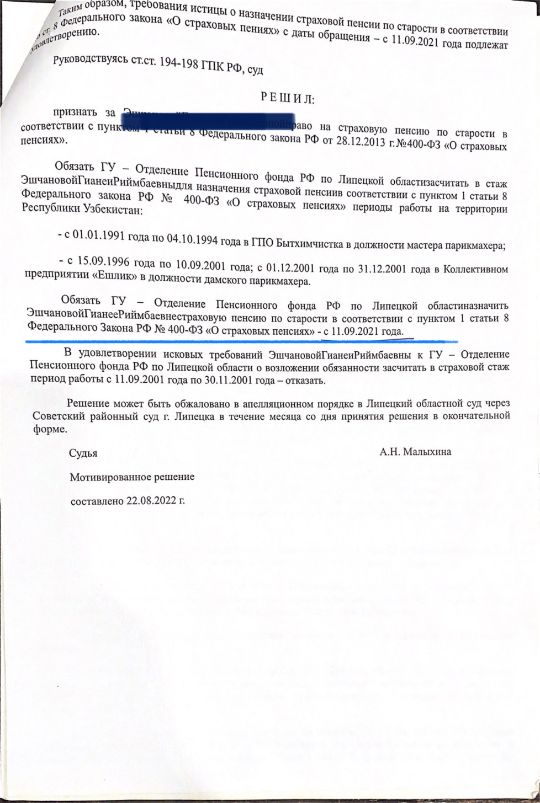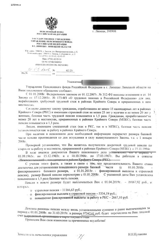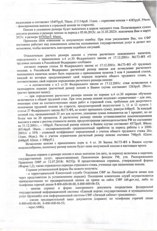 Мы добились успеха и нам сделали перерасчет пенсии с 05.06.2015 года по 31.03.2023 года в размере 44765,66 рублей!